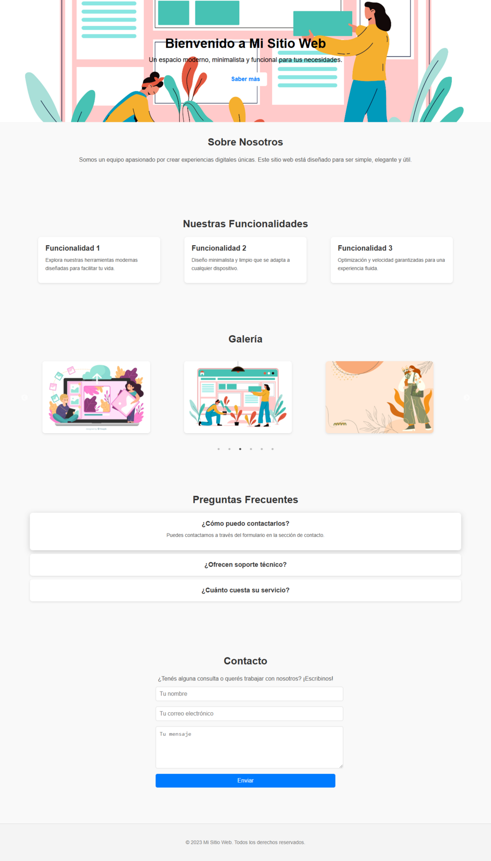 - Sección de preguntas frecuentes (FAQ) con efecto de despliegue.